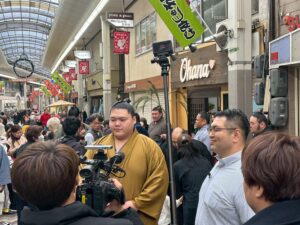 普段から大嶽部屋力士の様子を有吉ゼミのスタッフが撮影されていて、本日は池田市のサカエマチ商店街で撮影が行われました。
